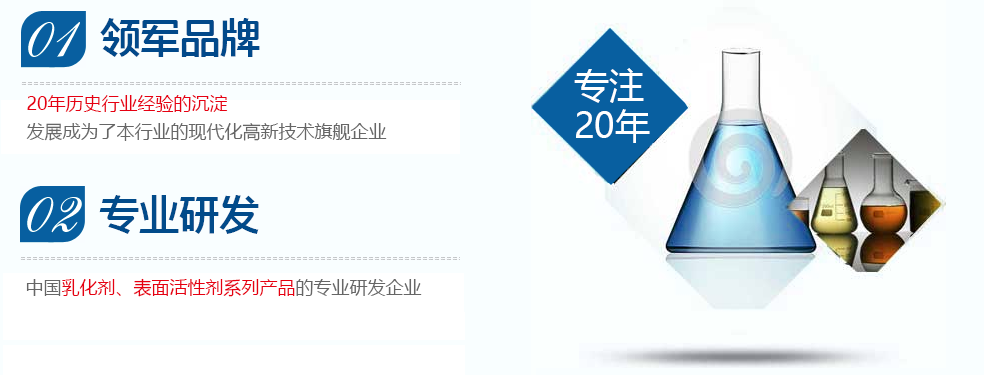 本公司依托淄博的化工區(qū)位優(yōu)勢(shì),掛靠大中專(zhuān)化工院校及科研單位,專(zhuān)心致力于非離子表面活性劑的開(kāi)發(fā)、應(yīng)用,是國(guó)內(nèi)較早從事研究、開(kāi)發(fā)、生產(chǎn)非離子表面活性劑的廠家之一,主要產(chǎn)品有:烷基酚聚氧乙烯醚(OP、NP、TX)系列、脂肪醇聚氧乙烯醚(AEO)系列、(平平加)系列、失水山梨醇脂肪酸酯聚氧乙烯醚(吐溫系列)、失水山梨醇脂肪酸酯(斯盤(pán)系列)、椰子油二乙醇酰胺(6501)、滲透劑系列、十二烷基苯磺酸、脂肪醇聚氧乙烯醚AES、油酸、三乙醇胺、椰油酰胺丙基甜菜堿CAB-35、聚醚系列、添加劑系列、聚乙二醇系列、乳化劑酯醚系列等等,產(chǎn)品遠(yuǎn)銷(xiāo)全國(guó)各個(gè)地區(qū),客戶上千余家,乳化劑在用戶中享有很高的聲譽(yù),市場(chǎng)占有率逐年攀升。近年來(lái),企業(yè)...